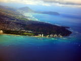 帰りは絶対進行方向左側をリザーブ、そうするとワイキキが一望できます。
